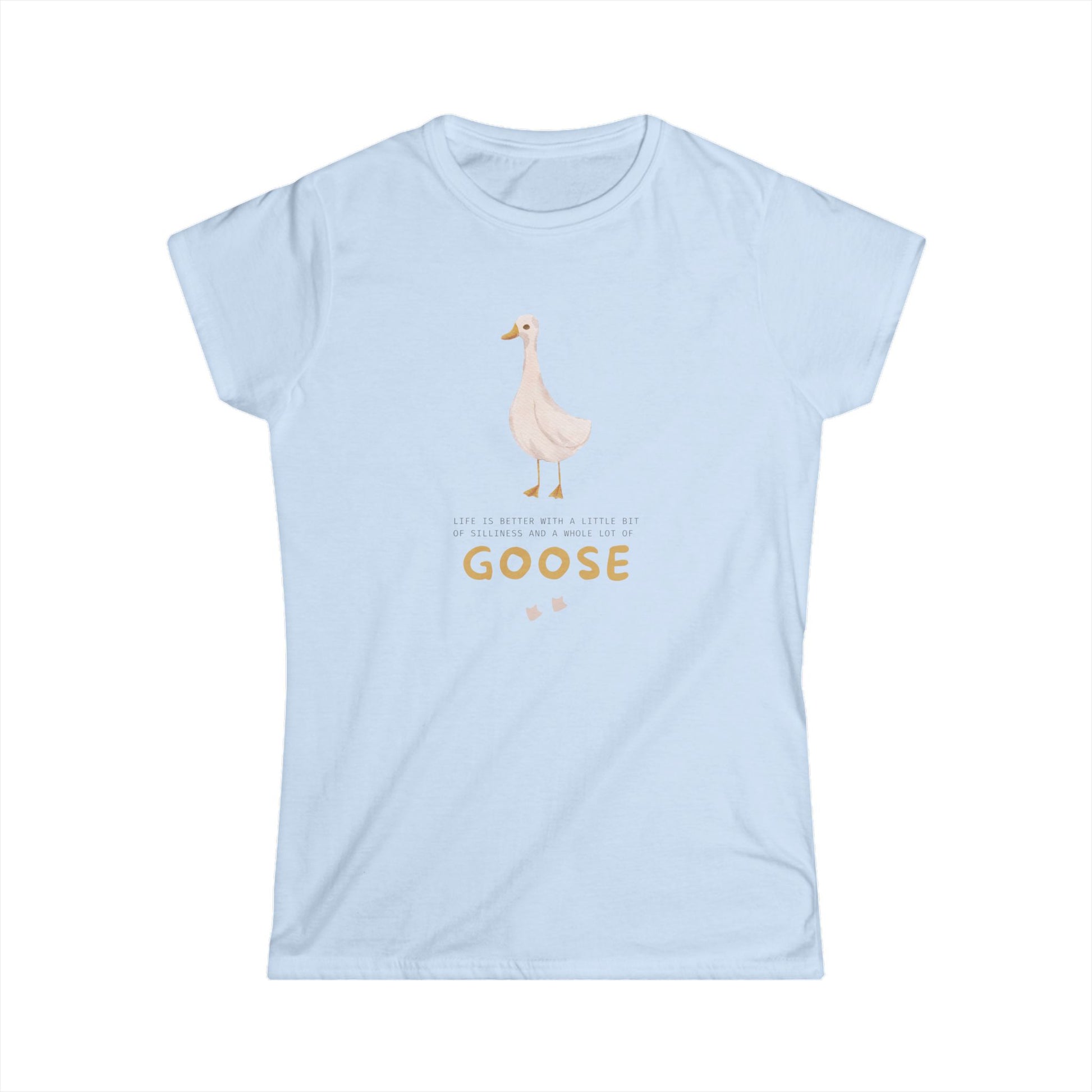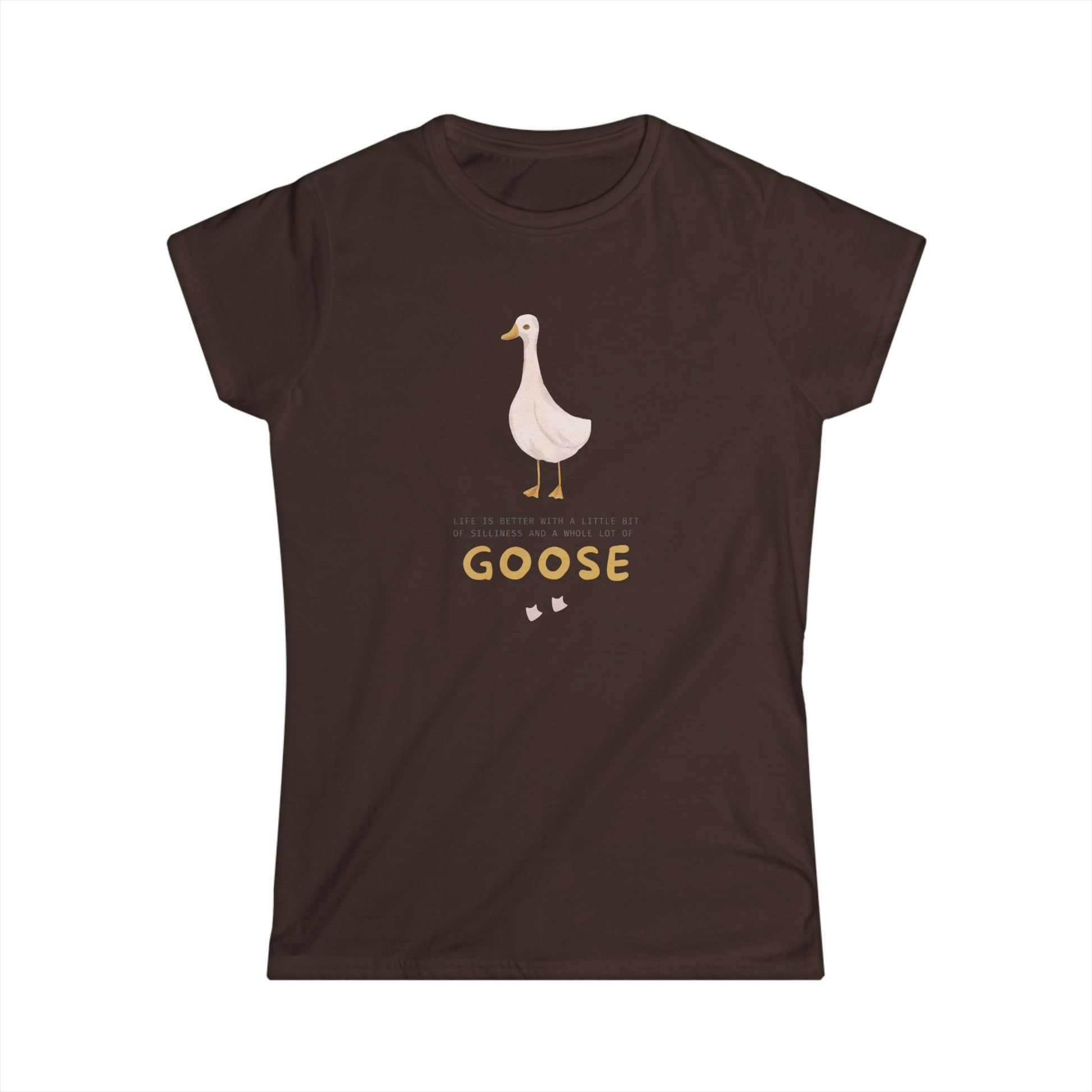 Embrace a blend of style and comfort with this Women's Softstyle Tee. Featuring a playful design with a charming goose graphic, this tee adds a lighthearted touch to any outfit. It's perfect for casual outings, cozy gatherings, or just lounging at home. This versatile top is designed for adults who appreciate quality and fun in their wardrobe. Ideal for birthdays, casual celebrations, or as a thoughtful gift for bird lovers and nature enthusiasts alike, it brings joy to every occasion. Add a splash of personality to your everyday wear and make a statement wherever you go!